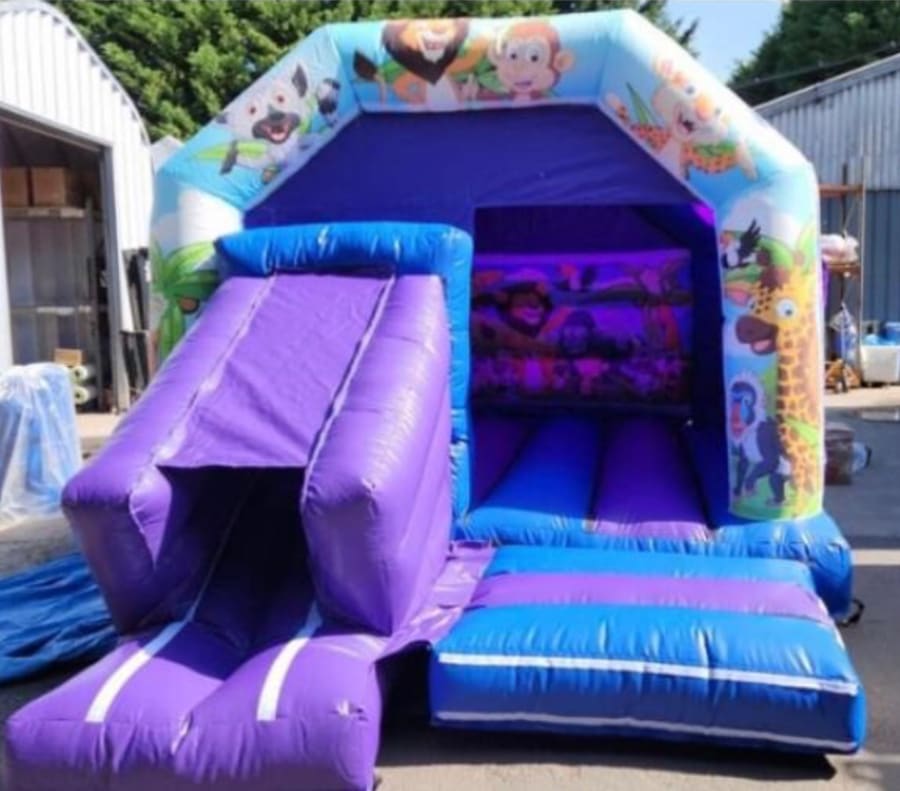 With a generous 12ft wide x 18ft long size, it provides plenty of space for energetic fun, while the built-in front slide adds extra excitement for children of all ages. Ideal for both indoor halls and outdoor garden parties, this inflatable is a fantastic all-in-one option.