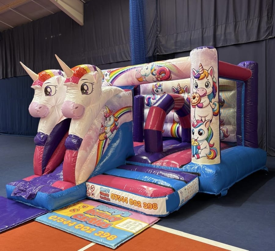 A magical inflatable that combines bouncing and sliding in one fun-filled unit — guaranteed to make any party truly unforgettable! 🦄✨