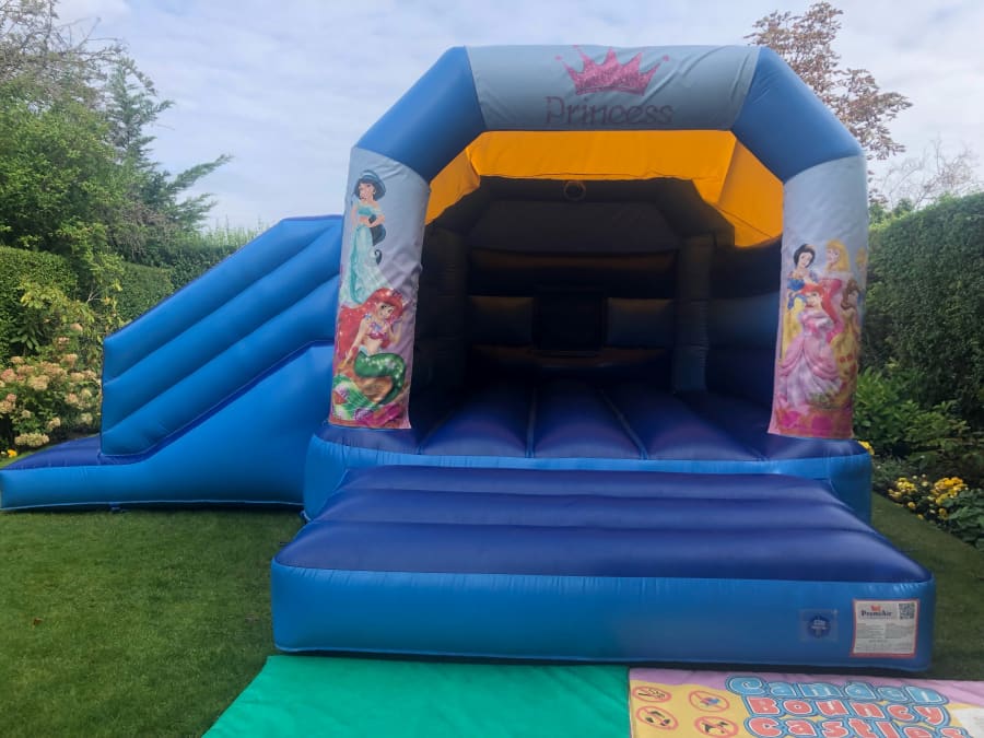 Make your little one’s fairy-tale dreams come true with our Princess Bouncy Castle with Side Slide. Beautifully decorated with colourful princess artwork and a charming crown design, this inflatable is perfect for creating a magical party atmosphere that children will love.