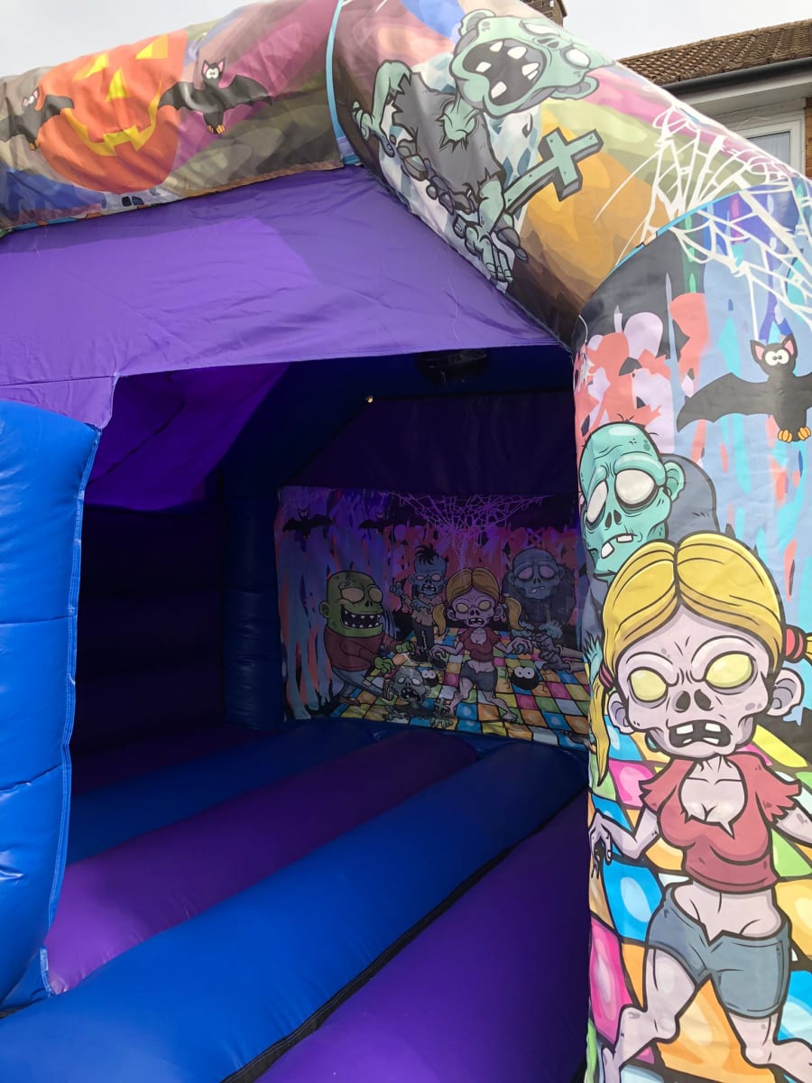 Here is our Halloween bouncy castle with slide. It’s here for the spooky season, so snap it up as the zombies are biting our fingers off for this one.. hurry and book.