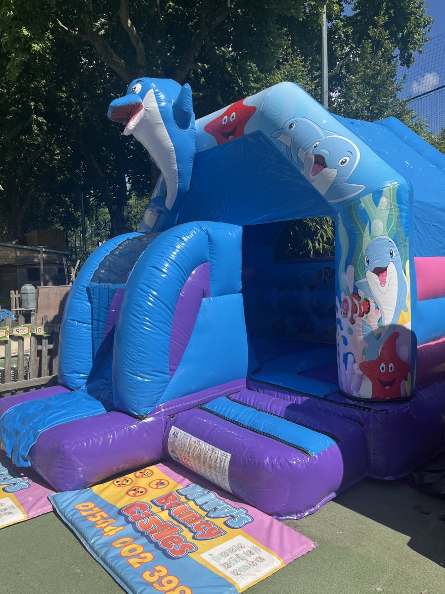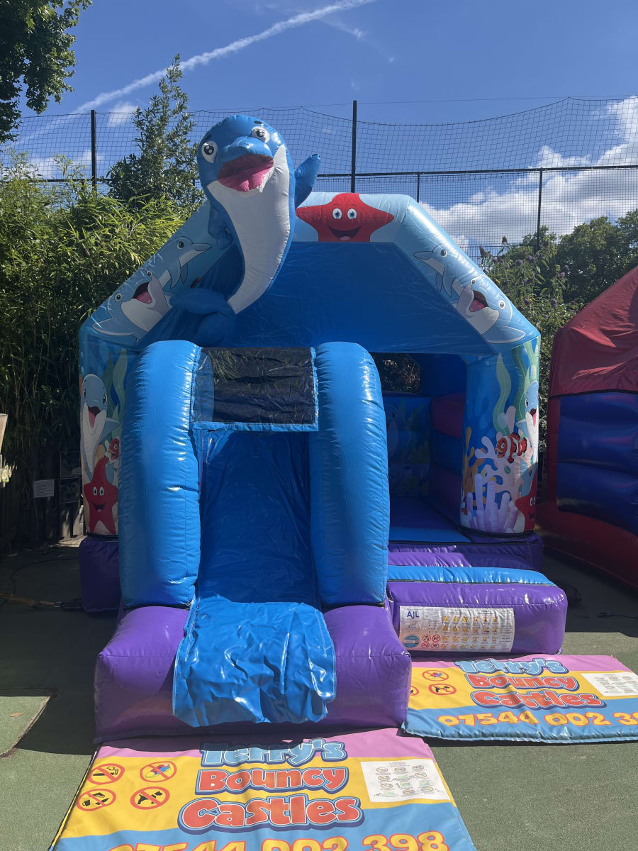 Make a splash at your next event with our 3D Ocean Splash Bouncy Castle with Slide! Featuring an eye-catching 3D dolphin on top and colourful underwater sea-life artwork, this inflatable is perfect for ocean-themed parties and younger children who love bright, playful designs.