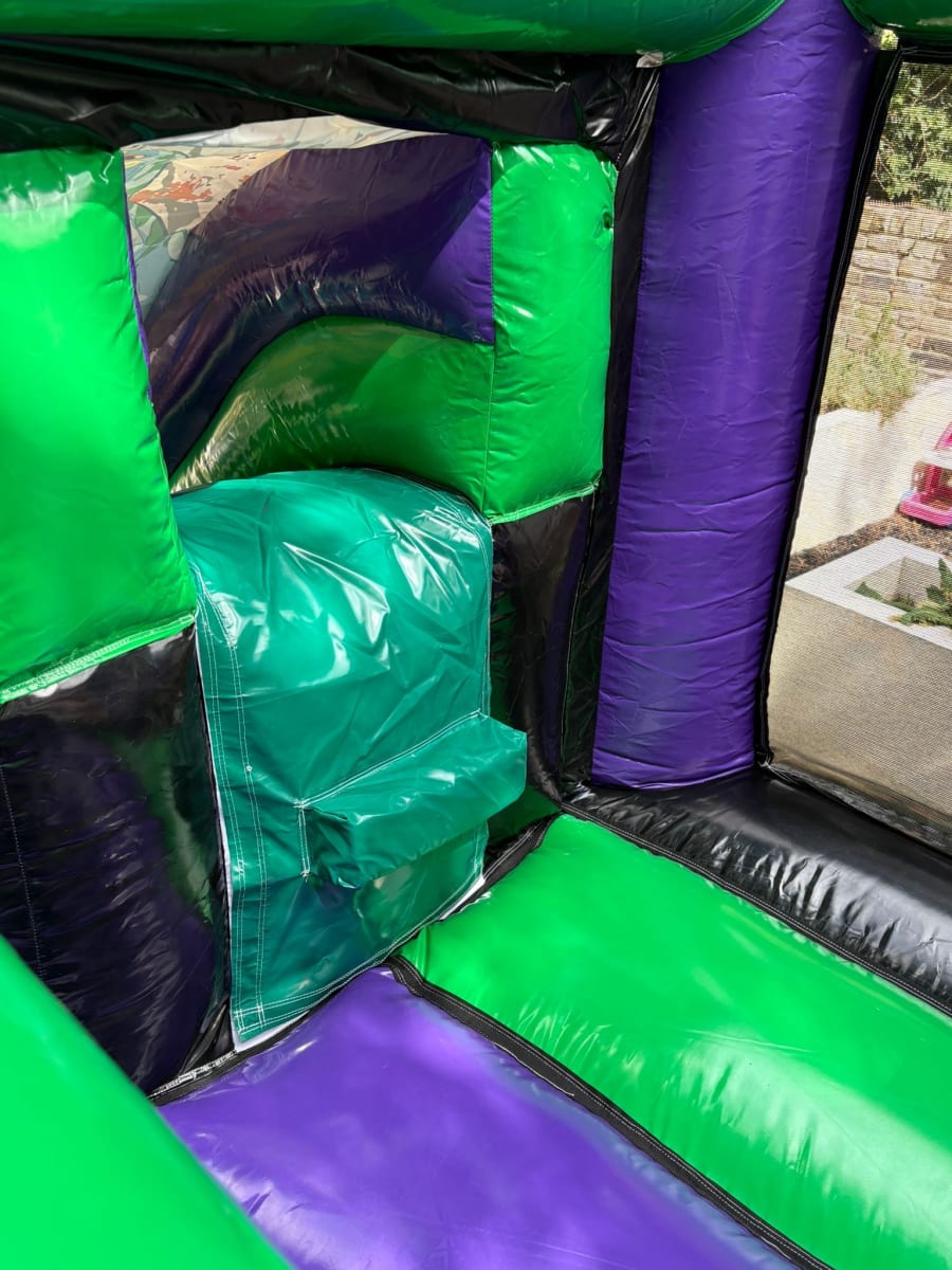 The built-in front slide adds extra excitement, giving children the choice to bounce or slide for double the fun. With a compact 12ft x 12ft size, it fits comfortably in most gardens and indoor venues while still delivering big impact and endless entertainment.