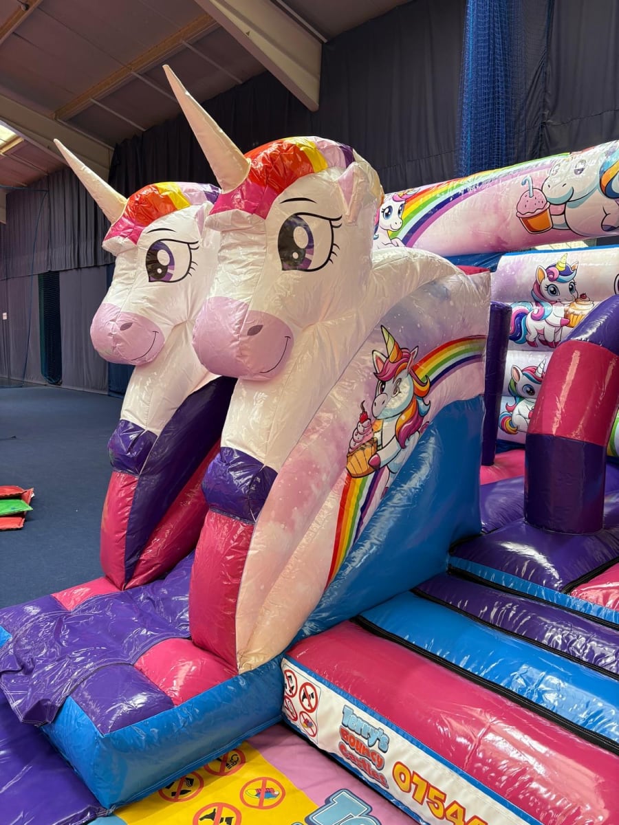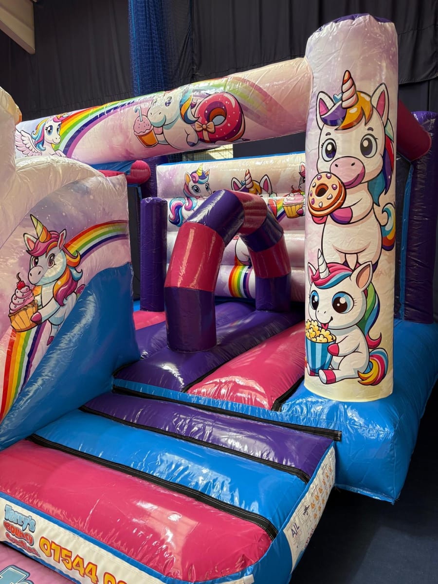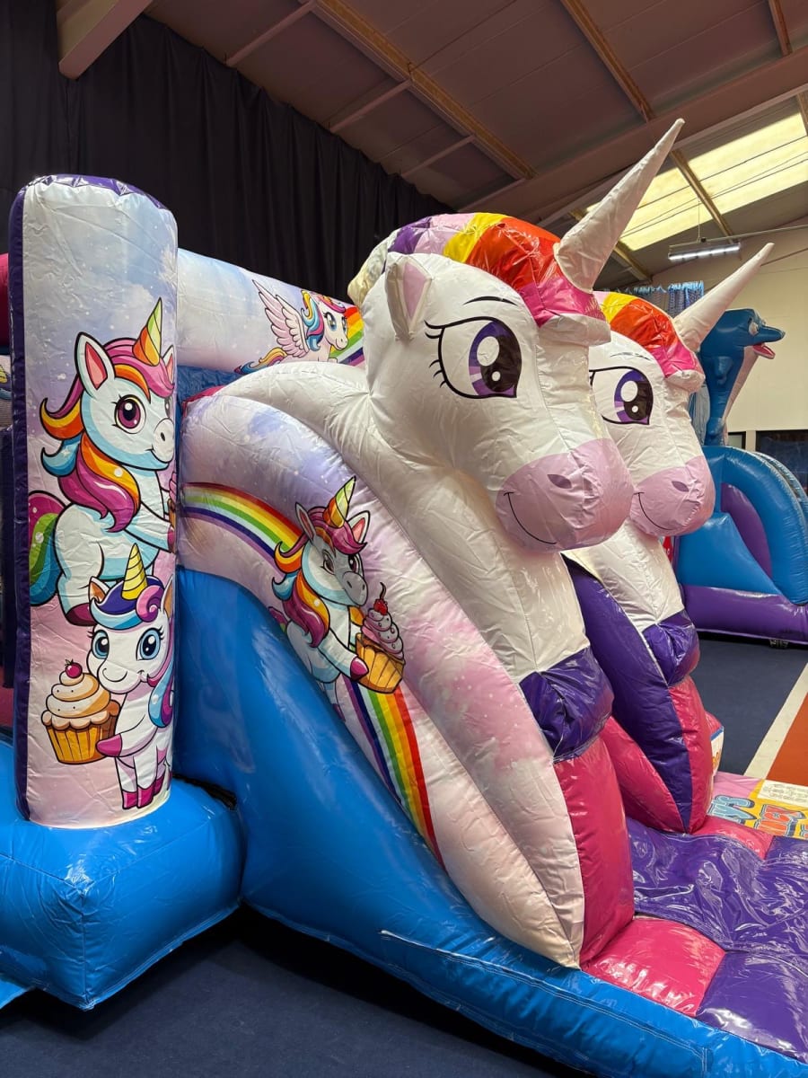 A magical inflatable that combines bouncing and sliding in one fun-filled unit — guaranteed to make any party truly unforgettable! 🦄✨