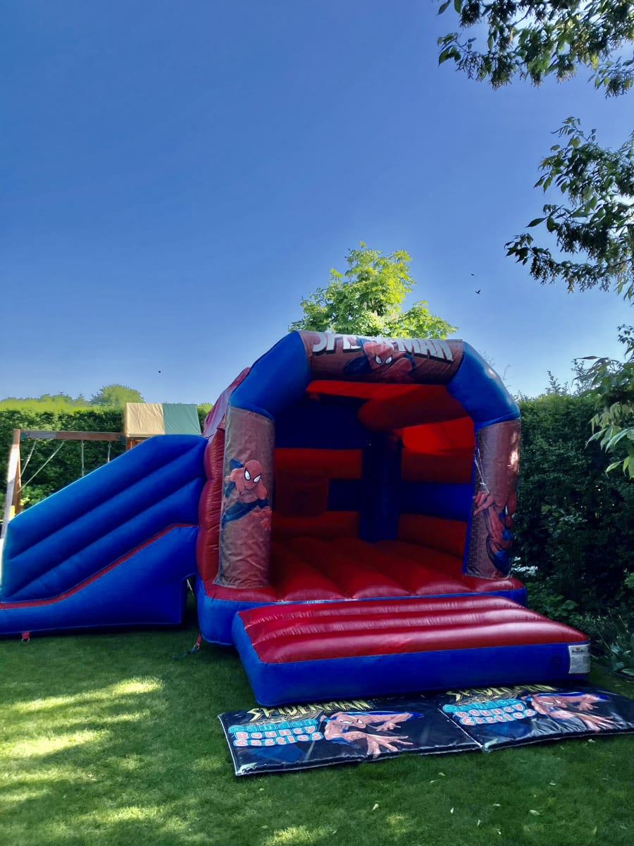 The spacious bouncing area provides plenty of room for energetic play, while the side slide adds an extra thrill, allowing children to bounce, climb, and slide again and again. Its striking design makes it a standout attraction at any event and a favourite for Spider-Man fans.