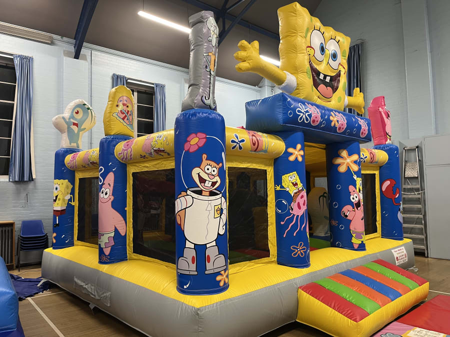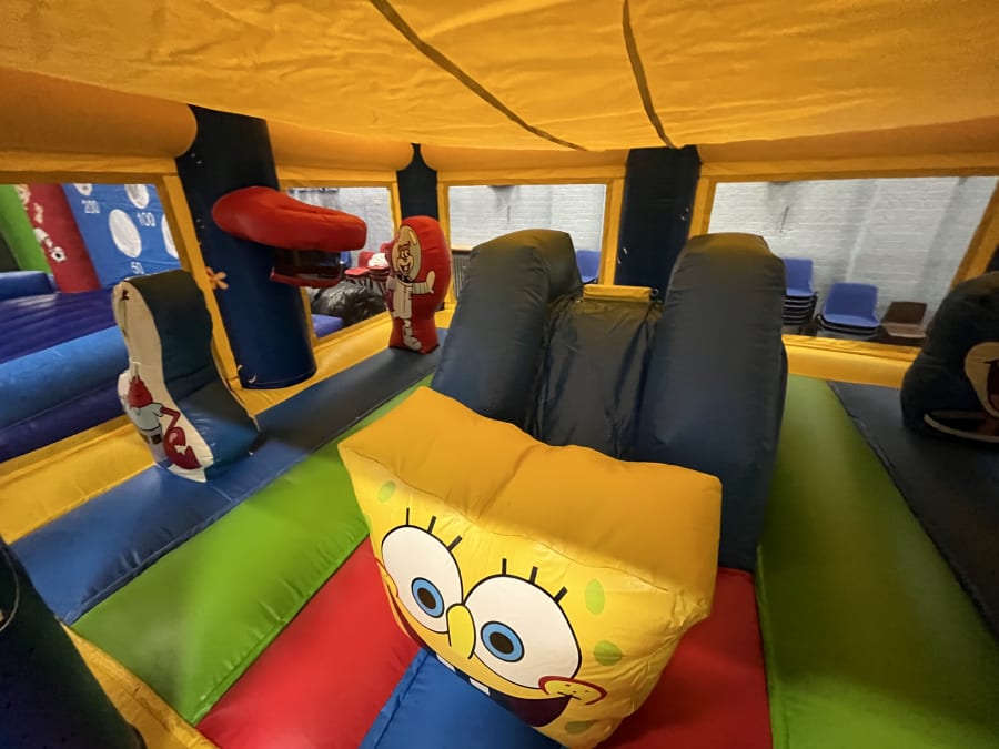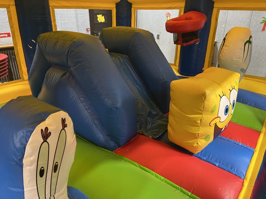 Get ready for underwater fun with our 3D SpongeBob Funhouse Bouncy Castle – a bright, action-packed inflatable that’s guaranteed to be a crowd favourite! Featuring a huge 3D SpongeBob figure on top and colourful Bikini Bottom artwork all around, this funhouse-style inflatable is bursting with excitement.